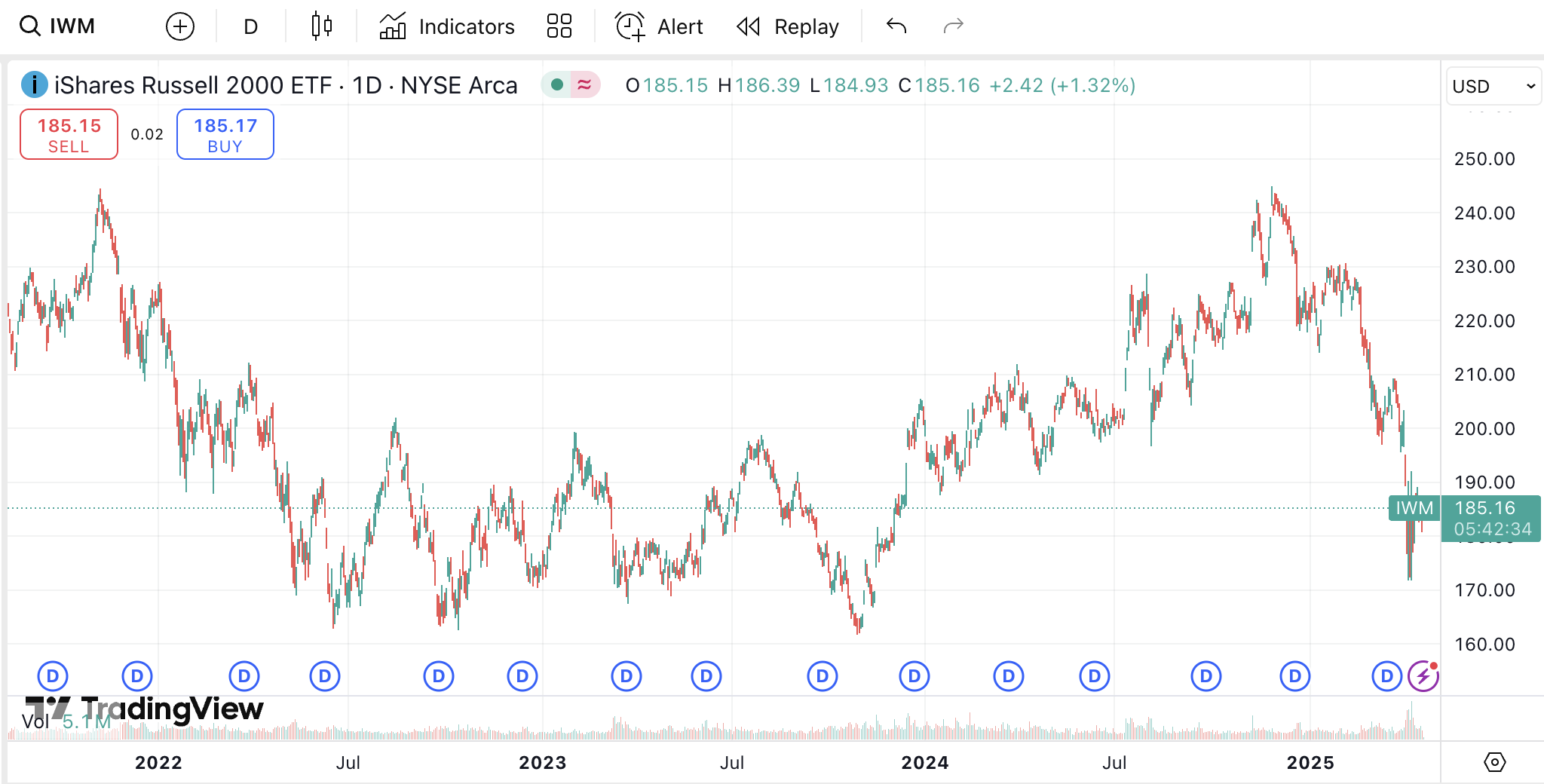 It dropped swiftly into the sideways channel formed in 2022 and lasting into 2024. I posted in Discord this idea that if IWM dropped, I would start to trade it and I called out this exact range: